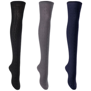3 Pairs Awesome Women Thigh High Cotton Boot Socks. Durable Knee High Socks, Perfect As Winter & Spring Socks Size 6-9 T1024 (Black,Dark Grey,Navy)