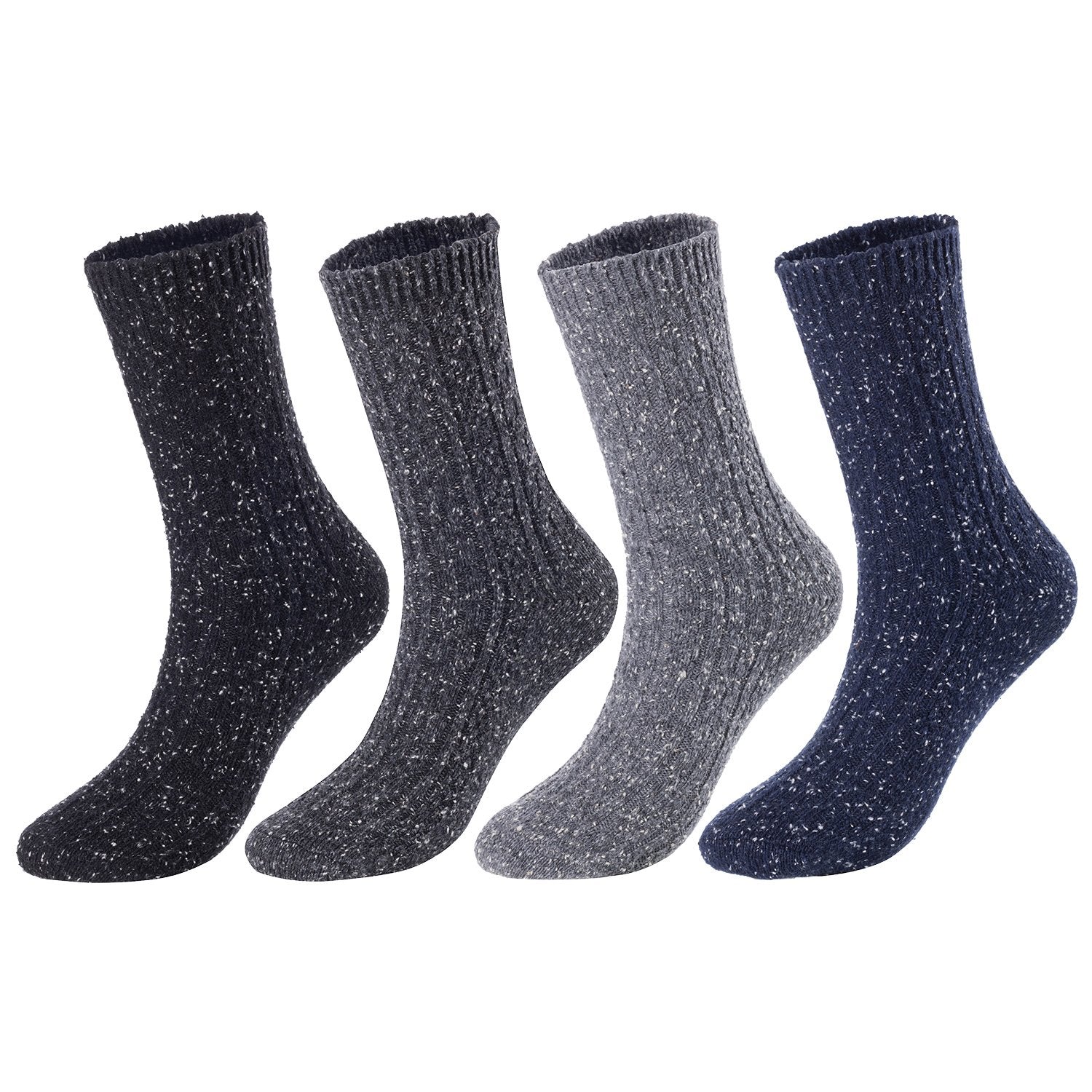 AATMart Big Girl's Women's 4 Pairs Wool Blend Crew Socks. Outstanding Quality Ideal for the Cold Winter Weather Size 6-9 HR1614 (Black, Dark Grey, Grey, Navy)