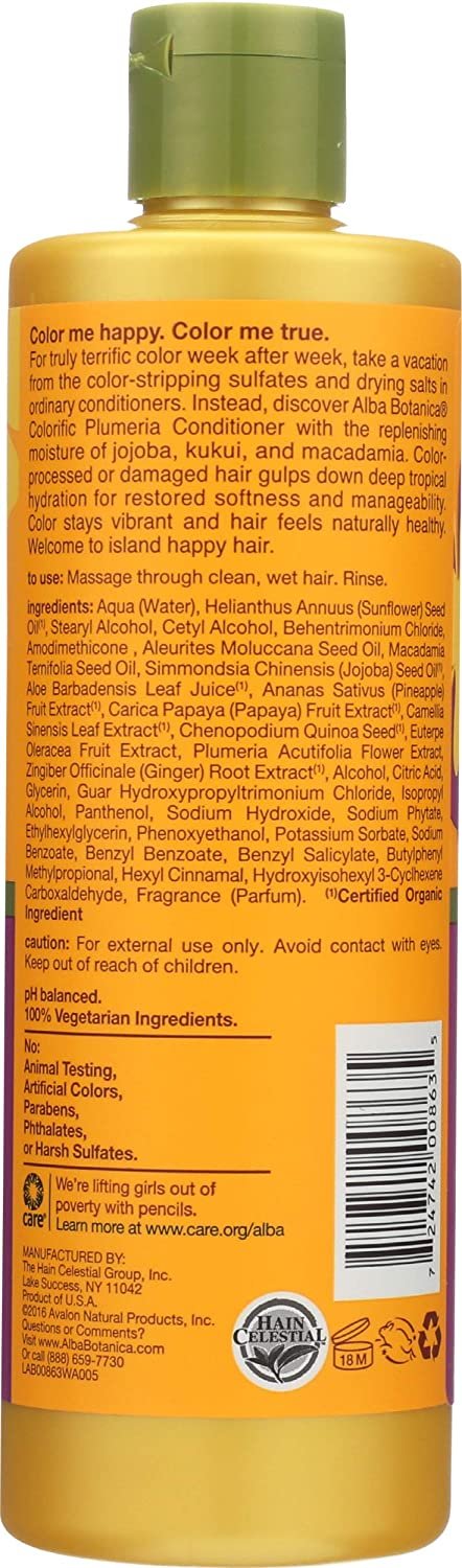 Alba Botanica Natural Hawaiian Conditioner - Colorific Plumeria 12 oz (340 grams) Liquid