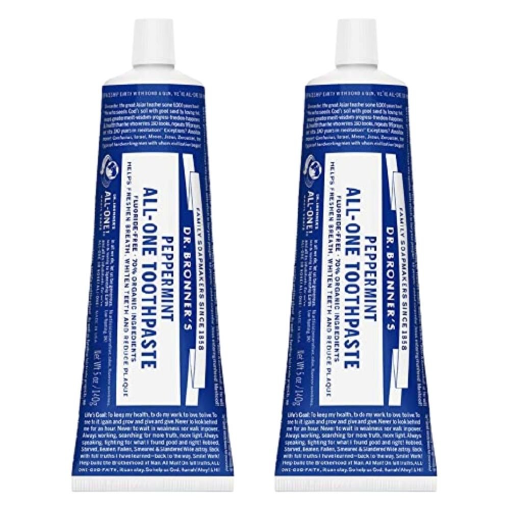 All-One Toothpaste (Peppermint, 1 ounce) - 70% Organic Ingredients, Natural and Effective, Fluoride-Free, SLS-Free, Helps Freshen Breath, Reduce Plaque, Whiten Teeth, Vegan - Pack of 2