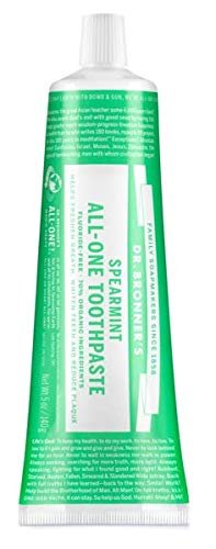 All-One Toothpaste (Spearmint, 5 ounce) - 70% Organic Ingredients, Natural and Effective, Fluoride-Free, SLS-Free, Helps Freshen Breath, Reduce Plaque, Whiten Teeth (5 Ounce) 4 Pack