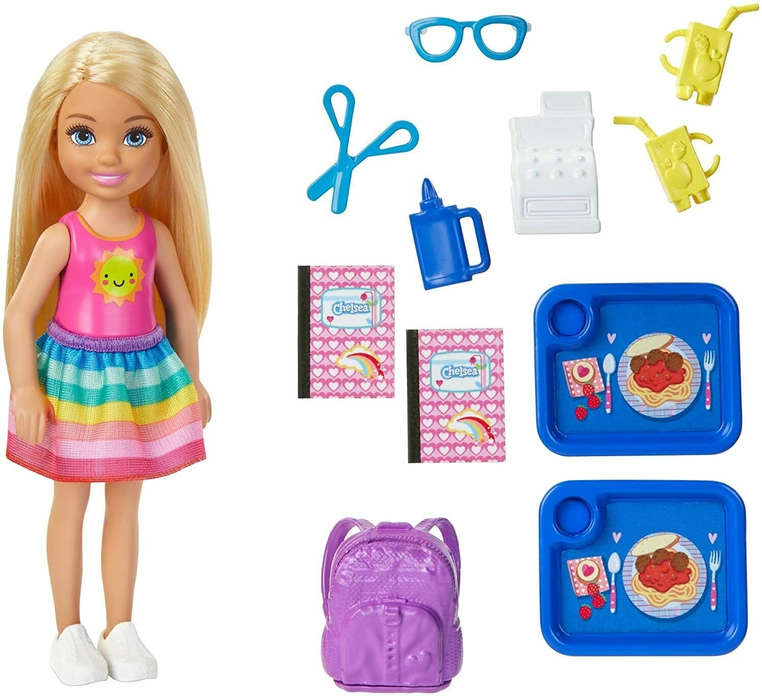 With so many themed play pieces, like notebooks, juice boxes, school supplies, a backpack and pair of glasses for Chelsea, imaginations can play out endless school stories.