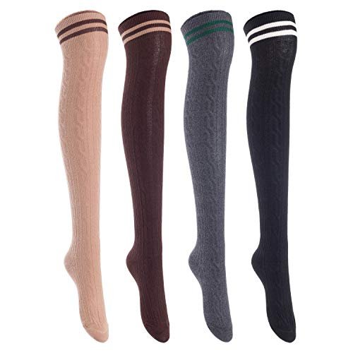 Big Girls' Women's 4 Pairs Over Knee High Thigh High Cotton Socks Leg Wamers Size L/XL