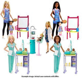 Play out a variety of health care careers with Barbie doll play sets because she knows you can be anything! These Barbie dolls are ready to see patients with furniture for an office or exam room, accessories to play out a check-up and a toddler to care for. Inspired by a real doctor or dentist office, details are realistic with signature-style touches for classic Barbie fun. Choose from Barbie pediatrician doll with an examination table (featuring x-ray screen and a computer) and toddler patient with removable cast or Barbie dentist doll with a chair, sink station (with faucet, shelves and lamp) and toddler patient to treat. Accessories expand storytelling play. Pediatrician Barbie doll has a laptop, eye and ear tool and stethoscope; dentist Barbie doll works with a dental tool, toothbrush, toothpaste tube and tooth model. Both wear career fashions, like scrubs or a dentist coat, for fashion fun. Play out classic scenes or imagine new possibilities because with Barbie, you can be anything! Includes Barbie doll wearing career fashion and accessories, medical furniture, themed accessories and toddler patient wearing fashion and accessories. Each set sold separately, subject to availability. Dolls cannot stand alone. Colors and decorations may vary.