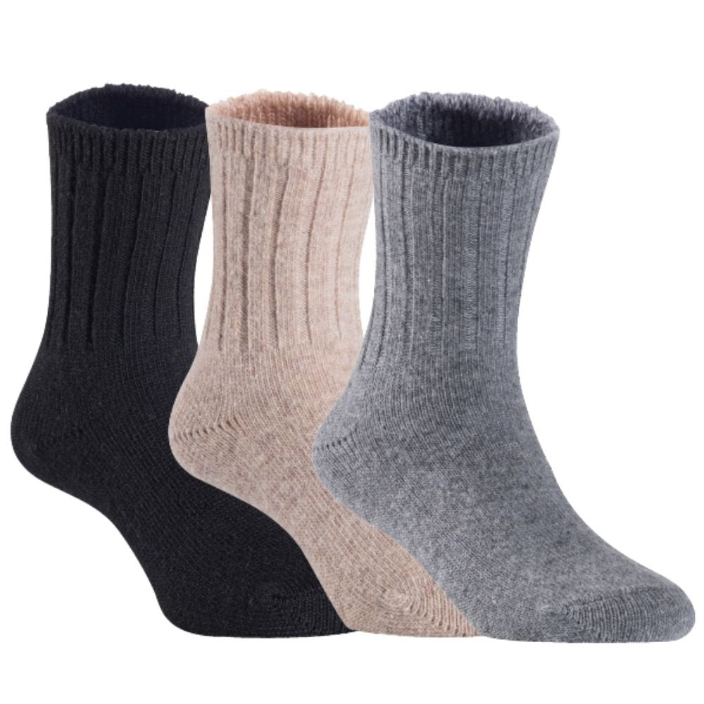 Children's Durable, Stretchable, Thick & Warm Wool Crew Socks. Perfect as Winter Snow Sock and All Seasons FS01, 3 Pair, Size 4Y-6Y, Black, Biege, Grey