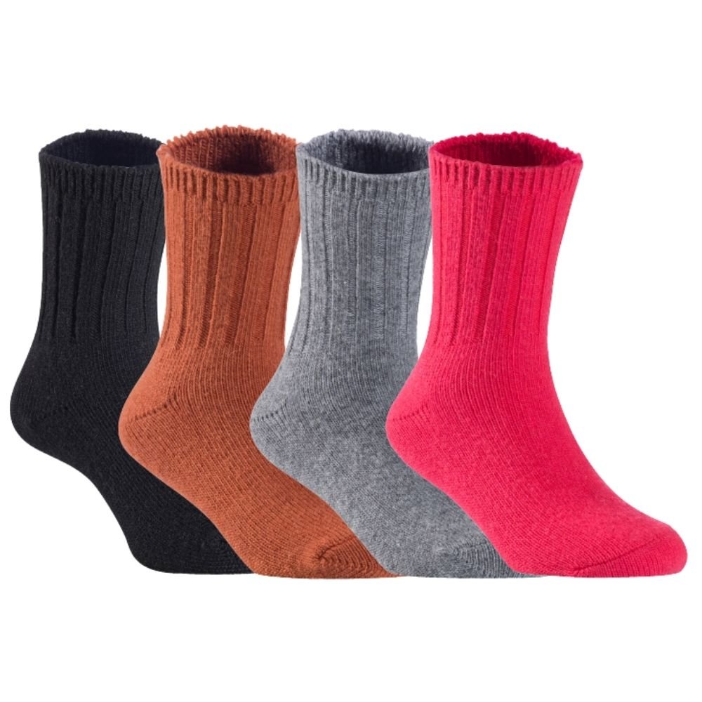 Children's Durable, Stretchable, Thick & Warm Wool Crew Socks. Perfect as Winter Snow Sock and All Seasons FS01, 4 Pair, Size 4Y-6Y, Black, Coffee, Grey, Red