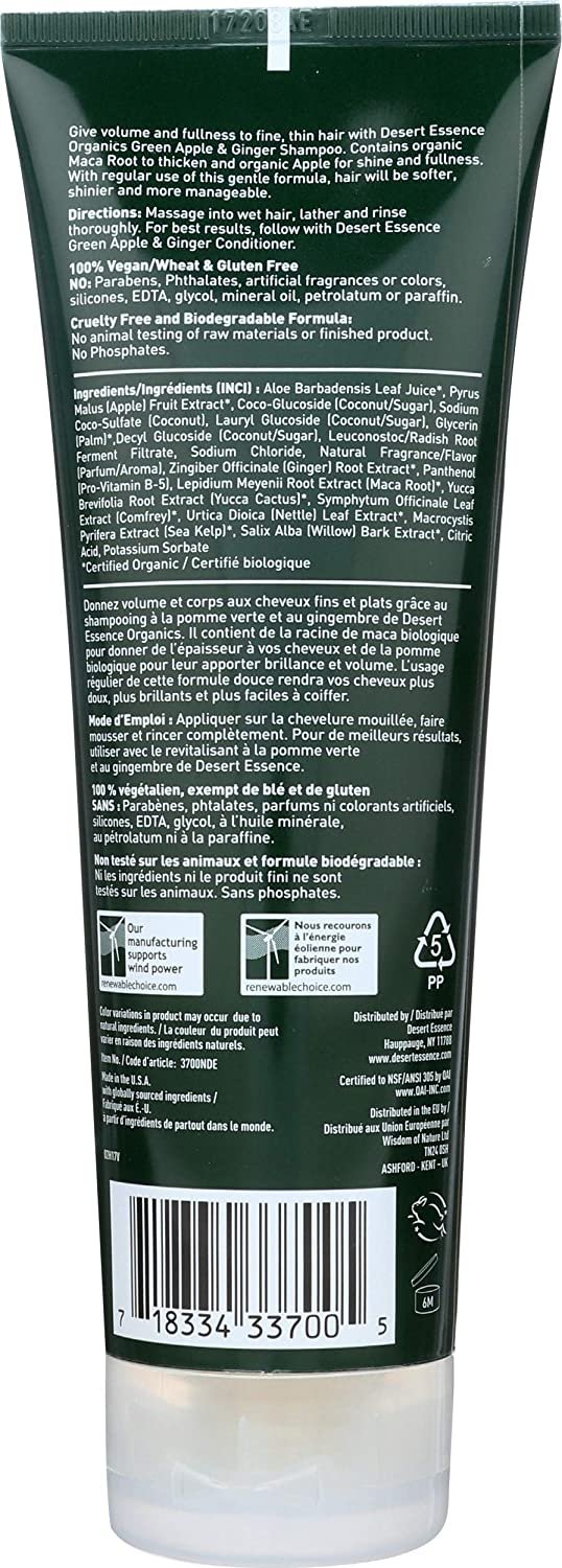 Desert Essence Organic Green Apple & Ginger Shampoo, 8oz-8 Ounces