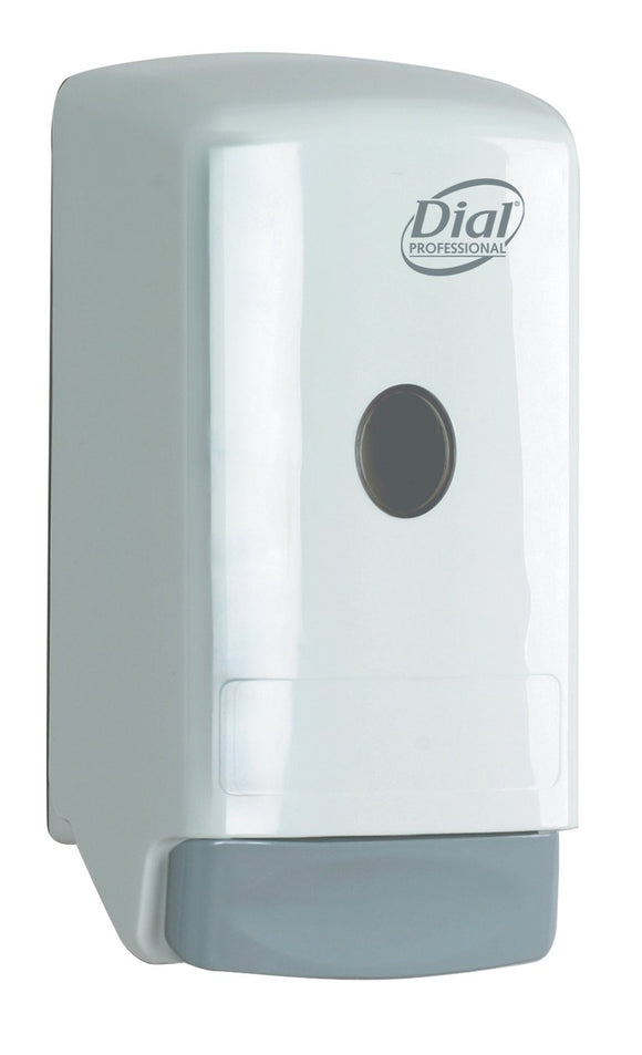 The Dial model 22 white flex dispenser is a wall mountable, manually operated, white in color dispenser for dial liquid soaps. Pressing the lever releases an appropriate amount of soap, which will become a lather that removes bacteria and dirt from hands. Dispenser uses 800 mL Dial liquid soap refills.