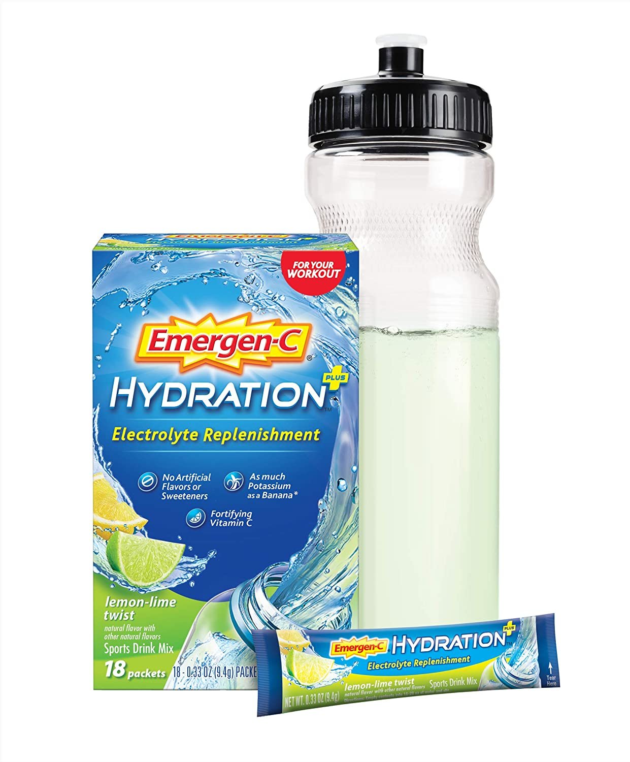 Emergen-C Hydration+ Sports Drink Mix With Vitamin C (18 Count, Lemon Lime Flavor), Electrolyte Replenishment, 0.33 Ounce Powder Packets