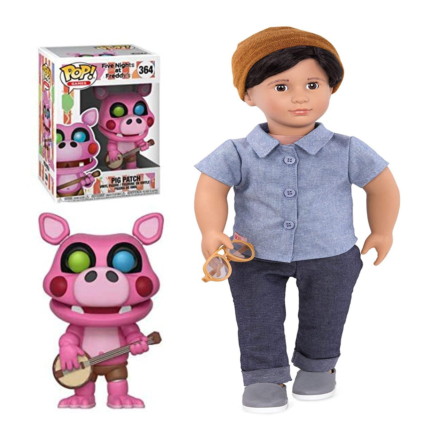 Games:Five Nights at Freddy's Pizza Simulator - Pigpatch Collectible Figure + Franco 18 inch Non-posable Boy Regular Fashion Doll, Pack of 2