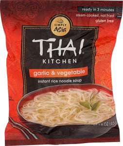Specially blended seasonings combined with delicate rice noodles are what make Thai soups so memorable. Now with Garlic & Vegetable Instant Rice Noodle Soup you can enjoy a delicious noodle soup made with garlic, ginger, and onion in just minutes. The rice noodles are gluten-free, egg-free and steam-cooked, never fried - a tasty snack or meal.