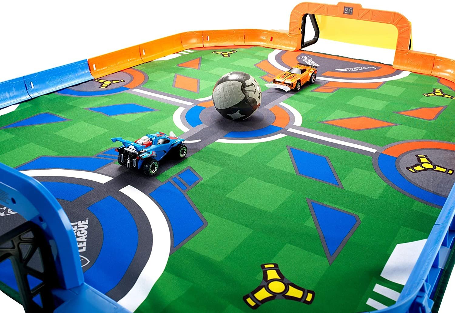 The Hot Wheels Rocket League Rivals RC Set is built for the ultimate Rocket League fan - Bring the wildly popular Rocket League video game to life with the adrenaline-fueled action of Hot Wheels cars! This "Smart" Arena that comes with infrared sensor goals to keep score, along with fan-favorite vehicles Dominus and Octane, controlled by your smart device. Use your device to keep score, add turbo boosts, and power your way to victory in the ultimate soccer showdown! The Rivals RC Set also comes with awesome Rocket League downloadable content (DLC) that players can redeem in-game on the platform of their choice. (Rocket League game sold separately).