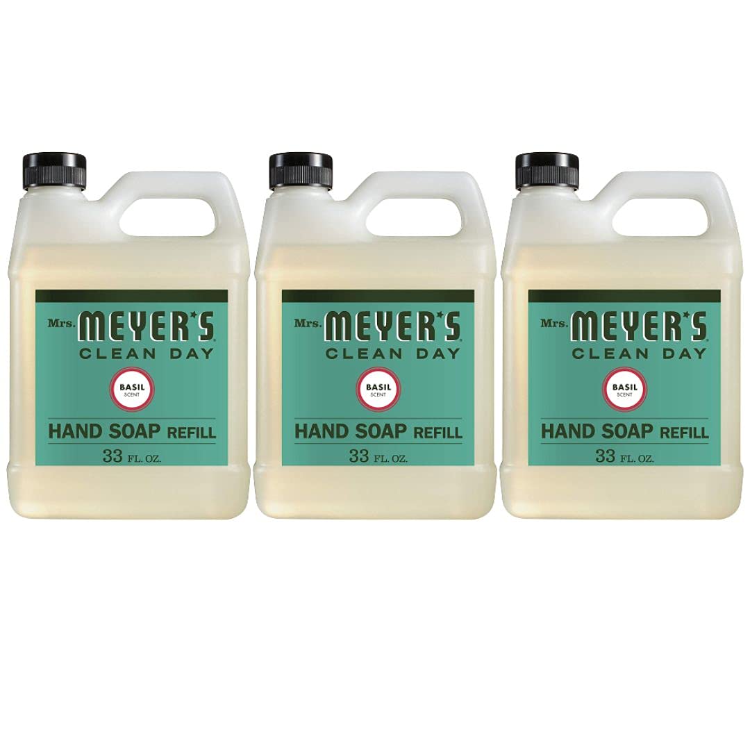 Hydrating Hand Soap Refill in Refreshing Basil Scent for any Soap Dispenser for Bathroom & Kitchen - Liquid Soap w/ Essential Oils for Hand Wash - Cruelty Free Eco Friendly Products -33 Fl OZ Per Pack, Pack of 3
