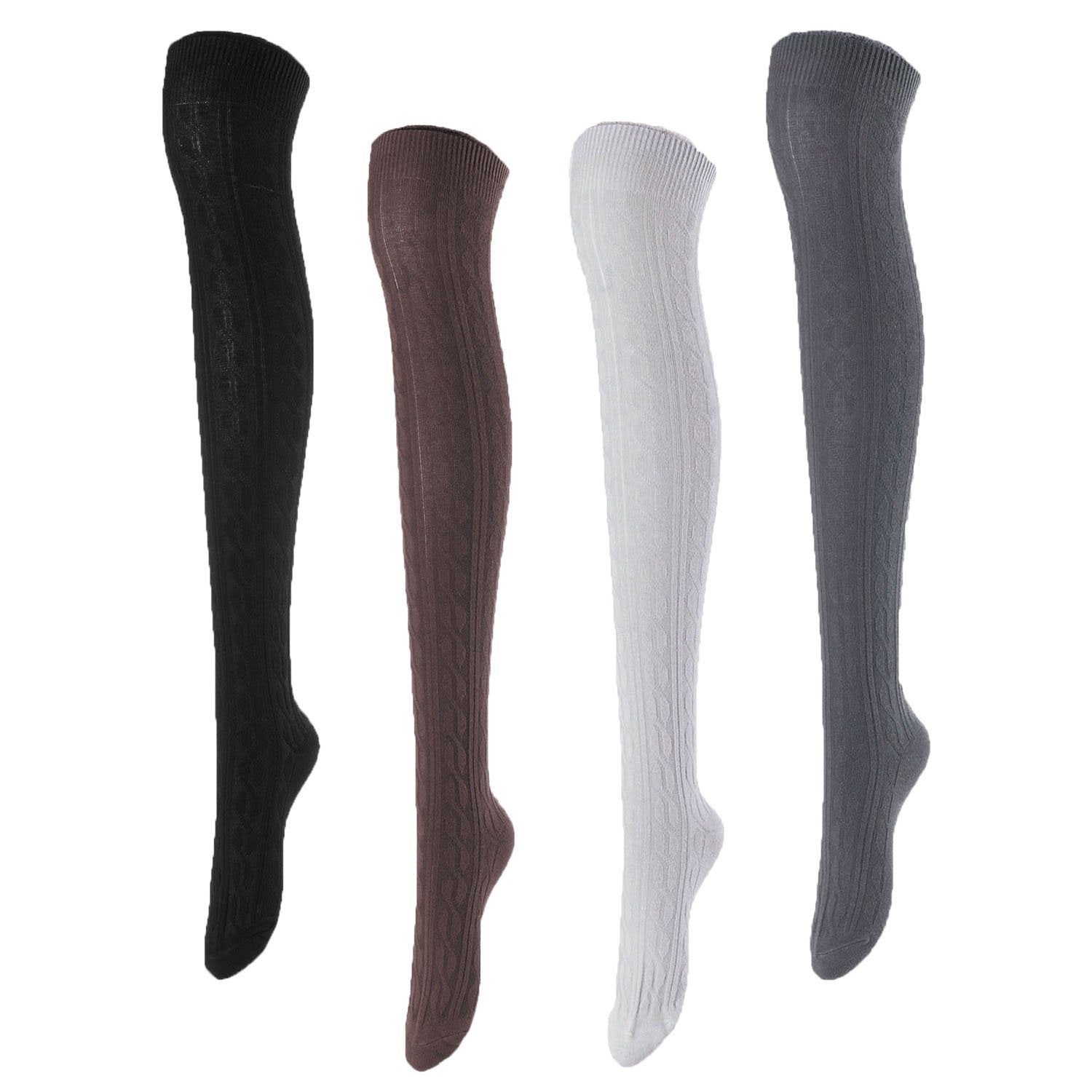 Incredible Women's 4 Pairs Thigh High Cotton Socks, Durable And Super Soft For Everyday Relaxed Feet JMYP1024 One Size (Black,Coffee,Grey,DarkGrey)