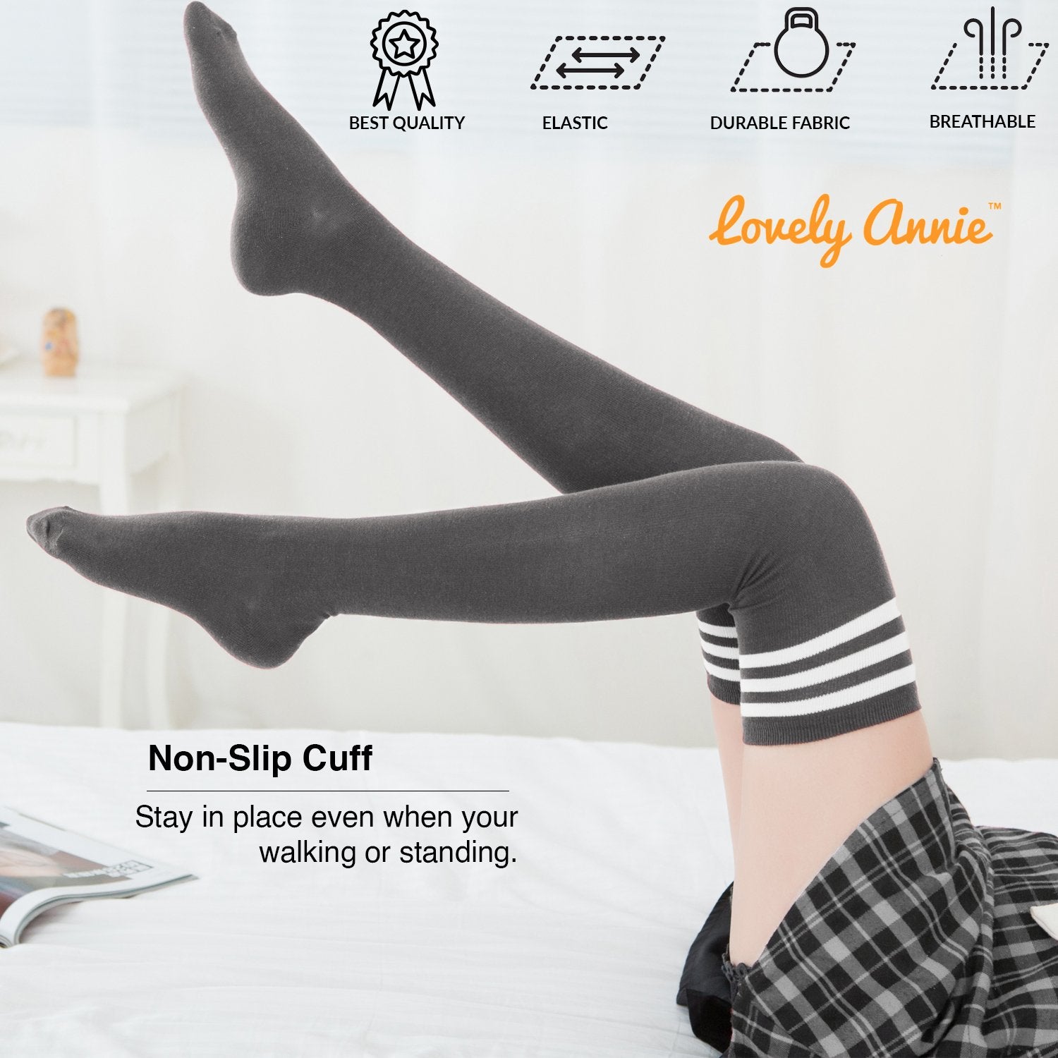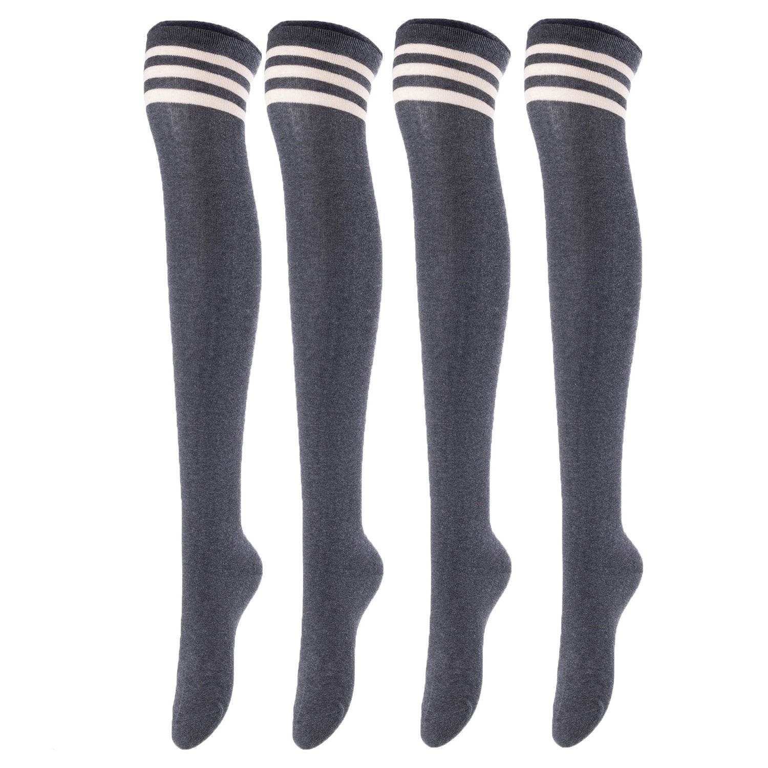 Incredible Women's 4 Pairs Thigh High Cotton Socks Unique, Durable And Super Soft For Everyday Relaxed Feet LA1022 One Size (Dark Grey)