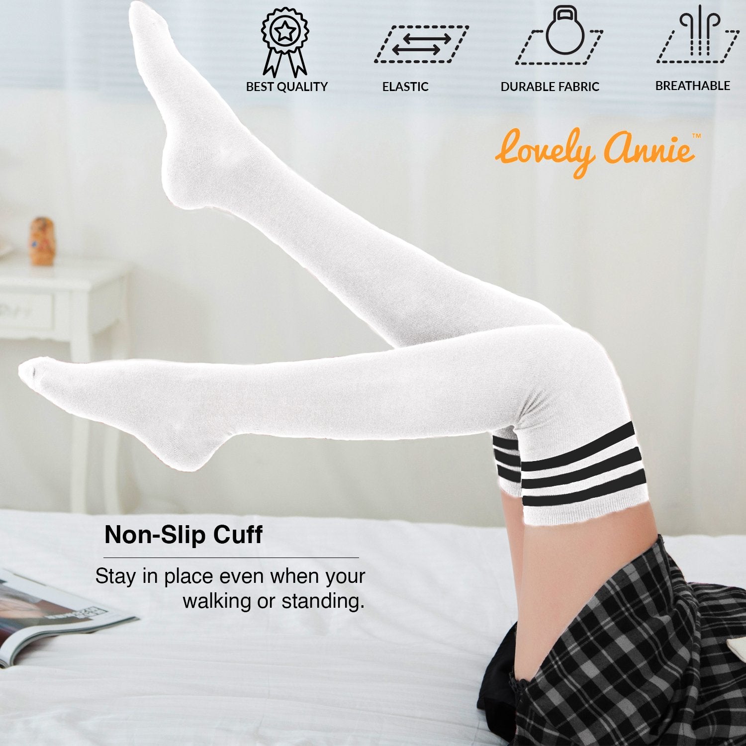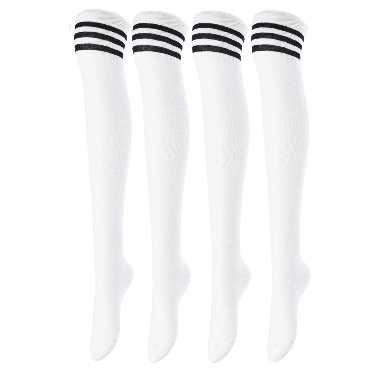 Incredible Women's 4 Pairs Thigh High Cotton Socks Unique, Durable And Super Soft For Everyday Relaxed Feet LA1022 One Size (White)