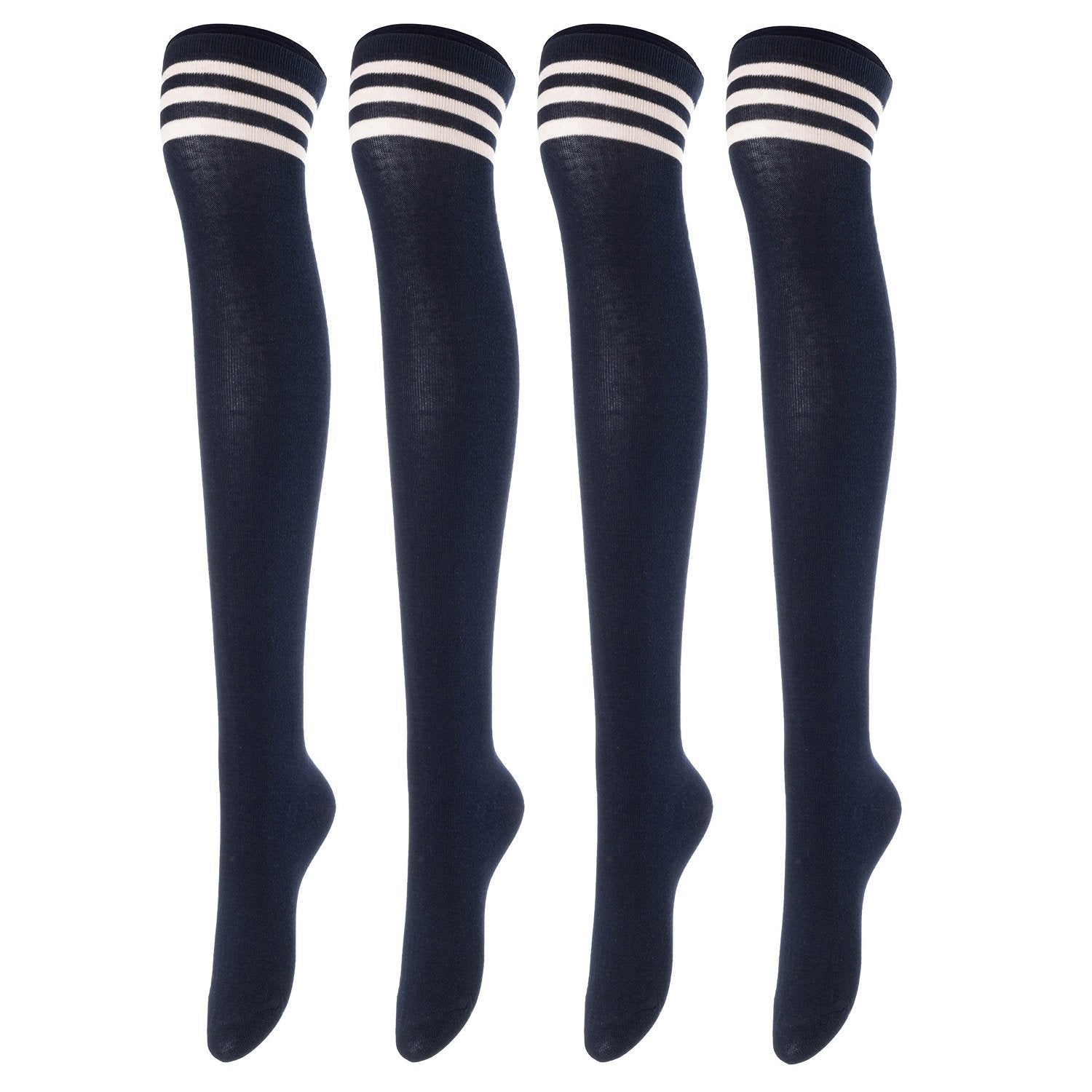 Incredible Women's 4 Pairs Thigh High Cotton Socks Unique, Durable And Super Soft For Everyday Relaxed Feet LA1022 One Size(Navy)