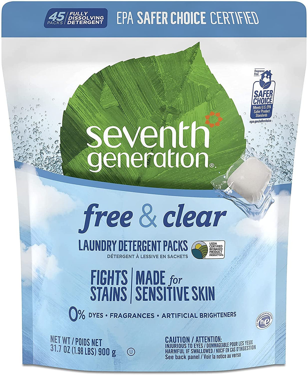 IT WORKS: Our convenient and mess-free laundry packs feature a powerful quadruple-enzyme formula that fights tough stains without the use of synthetic fragrances, dyes, and artificial brighteners. Grass stains, tomato sauce, or chocolate – you name it, we’ve got you covered. Plant-derived enzyme stain removers like Protease and Amylase power out stubborn stains while whitening and anti-graying enzymes keep clothes bright. Our laundry packs are wrapped in a dissolvable PVA film – just toss one in and let our plant-based ingredients work their wonder. WE CARE: You won’t find any fragrances around here. Our Free & Clear and Fragrance Free laundry products are gentle on sensitive skin. We believe peace of mind is a key ingredient to a clean, healthy home. That’s why we design all our laundry products with safety in mind and are proud to offer the first powdered laundry pack to be EPA Safer Choice Certified.