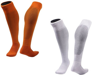 Lian LifeStyle 2 Pairs Exceptional Knee High Sports Socks for Soccer, Softball, Baseball and many other Sports XL0005 Size M (Orange,White)