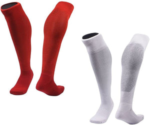Lian LifeStyle 2 Pairs Exceptional Knee High Sports Socks for Soccer, Softball, Baseball and many other Sports XL0005 Size M (Red,White)