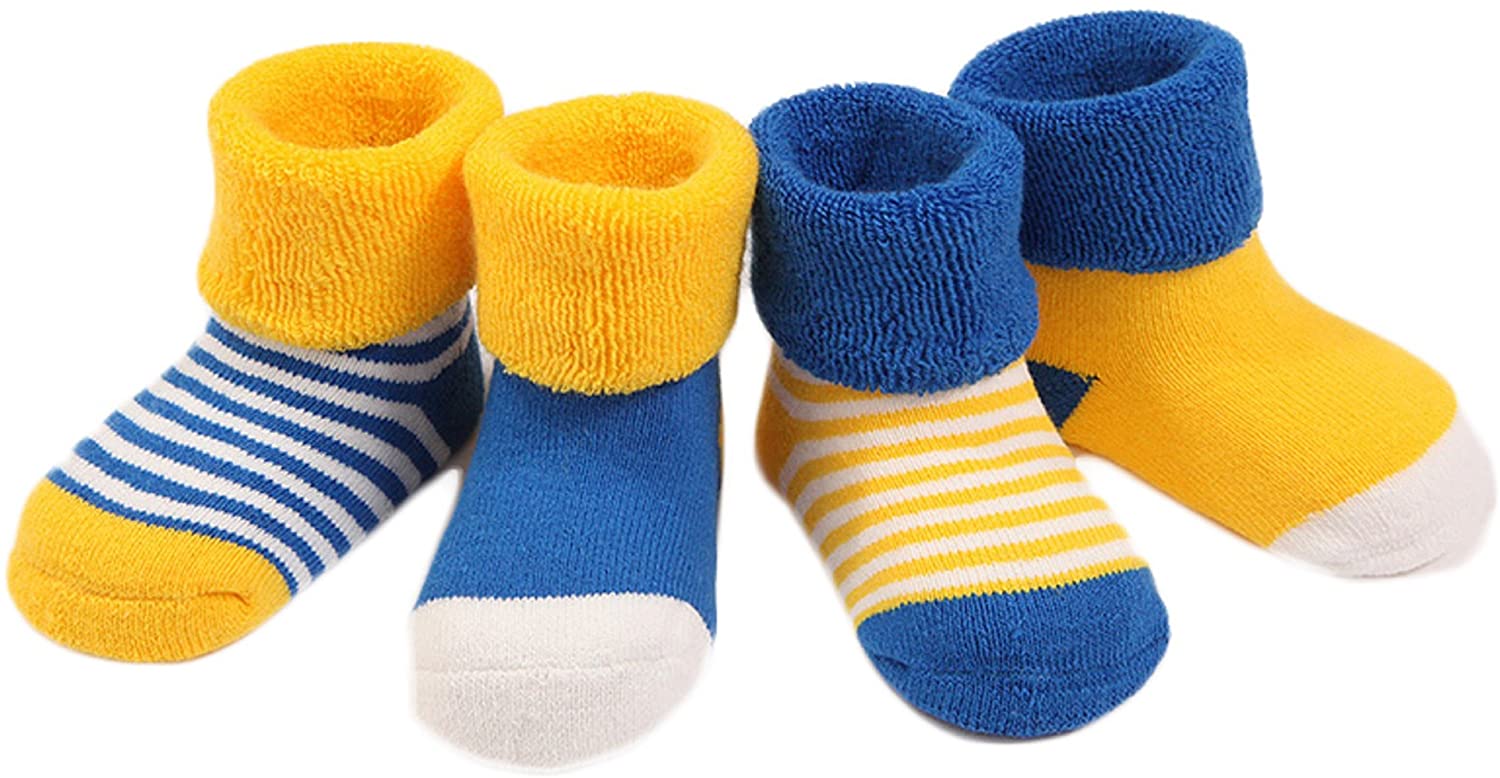 Lian LifeStyle Baby Toddler 4 Pairs Pack Thick Cotton Socks 3 Sizes(0Y-3Y)