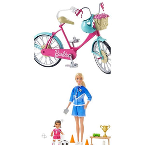 Lian LifeStyle Barbie Bundle, Barbie Bicycle + Barbie Soccer Coach Playset. 2 Packs