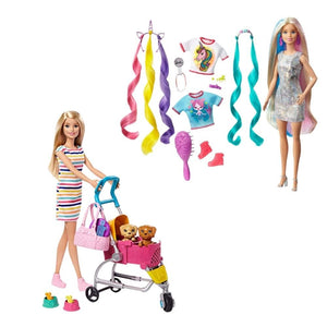 Lian LifeStyle Barbie Bundle, Barbie Fantasy Hair Doll + Barbie Stroll ‘n Play Pups Playset with Blonde Barbie Doll. 2 Packs