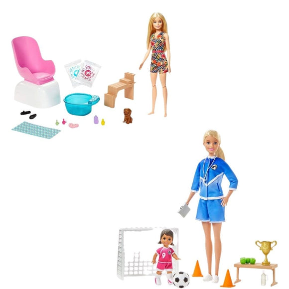 Lian LifeStyle Barbie Bundle, Barbie Mani-Pedi Spa Playset with Blonde Doll + Barbie Skipper BabysittersInc.. 2 Packs