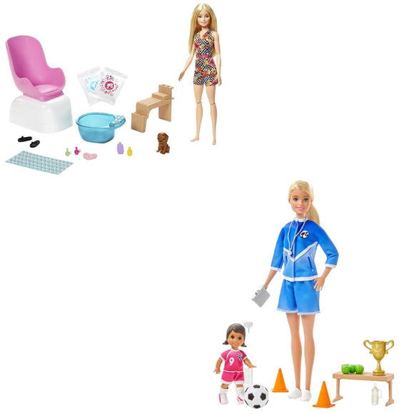 Lian LifeStyle Barbie Bundle, Barbie Mani-Pedi Spa Playset with Blonde Doll + Barbie Soccer Coach Playset. 2 Packs