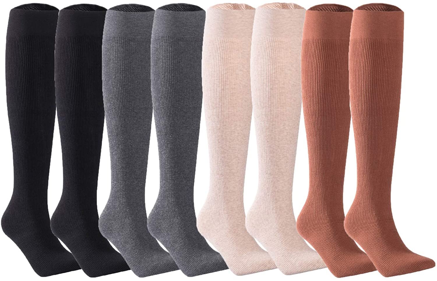 - HAPPY AND HEALTHY: These colorful over knee socks have a smart construction to fit and match any shoe type. Delight your feet with an extra soft and breathable material to keep them fresh and active in all your activities.