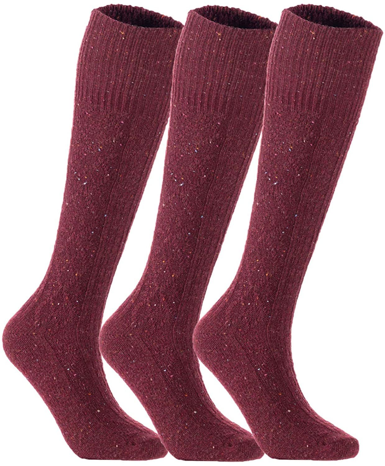 Lian LifeStyle Big Girl's Women 3 Pairs Knee High Wool Crew Socks HR1412 Size 6-9