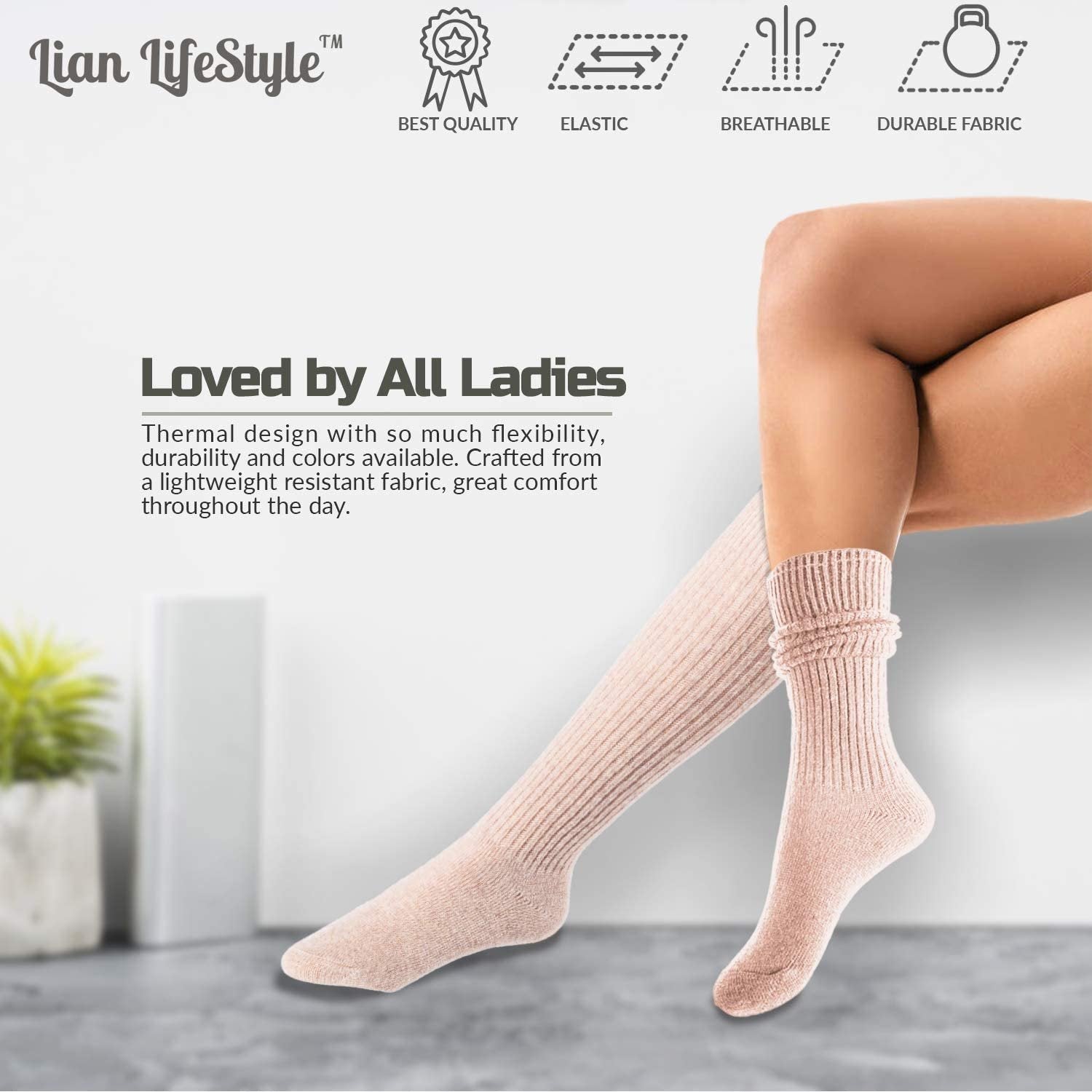Fabulous elastic composition to match and perfectly shape the thigh of any girl. Appropriate also for girls with a thin leg or women. These wool socks are tight enough to stay up but do not squeeze your ankle/foot.