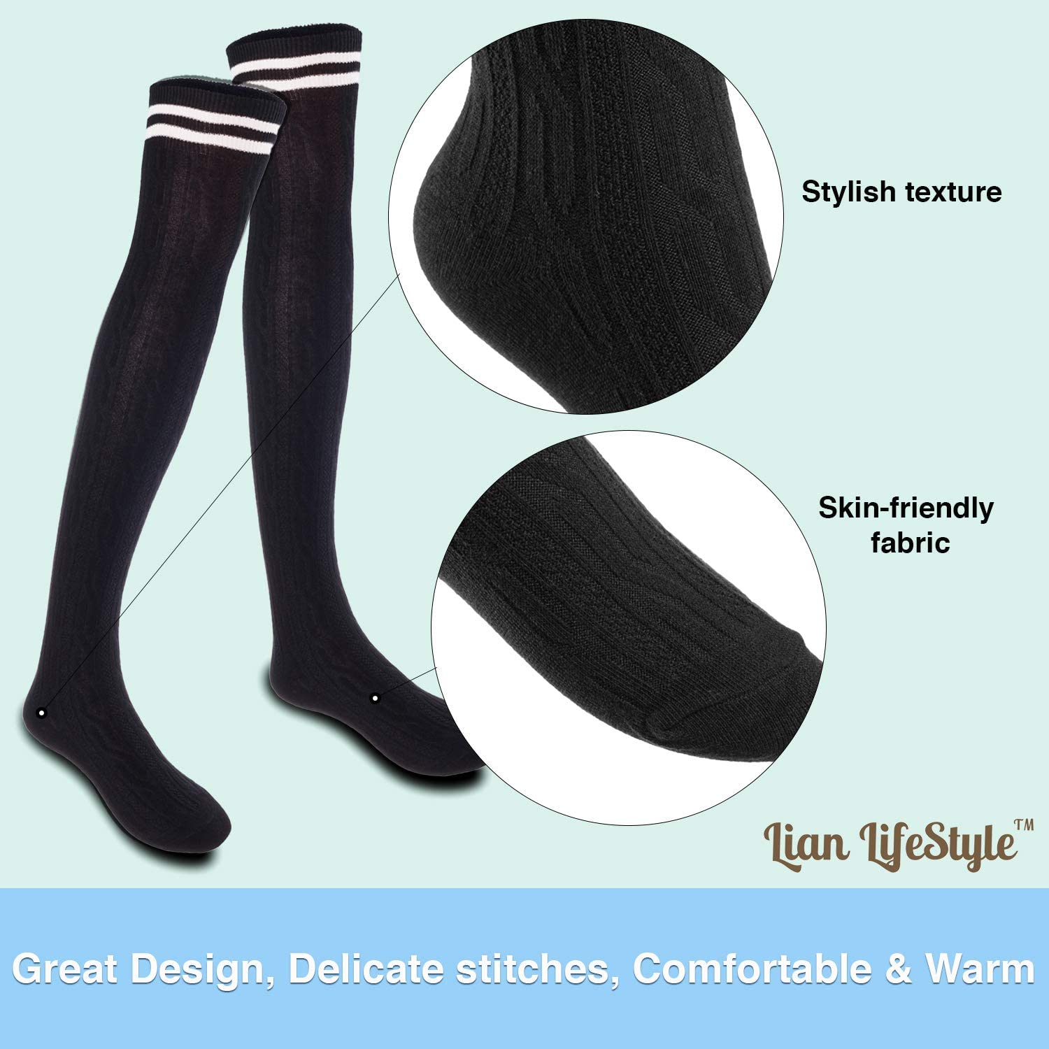 Lian LifeStyle Big Girl's Women's 3 Pairs Adorable Comfortable Soft Thigh High Over Knee High Cotton Socks Size 6-9 L1023(Random)