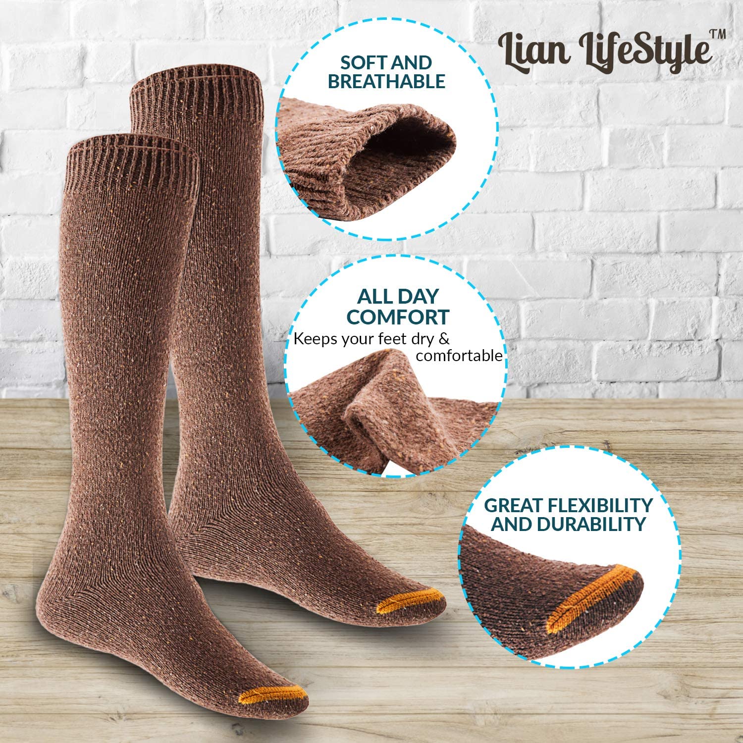 Lian LifeStyle Big Girls Women's 3 Pairs Cute Knee High Cotton Socks, Cozy Fluffy Fancy with a Wide Color and Size Range Size 6-9 LSBG8212-3p(Coffee)