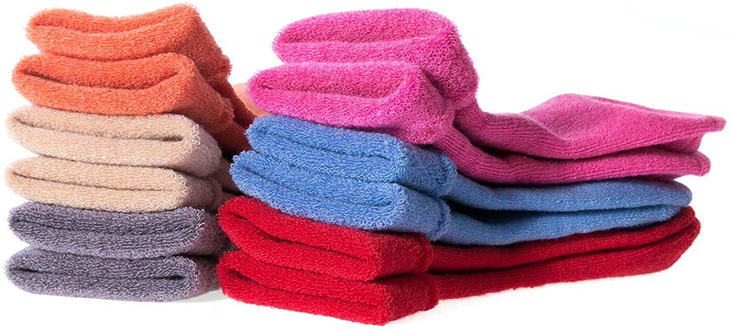 Lian LifeStyle Children 6 Pairs Pack Thick Wool Blend Crew Boot Socks Plain Color