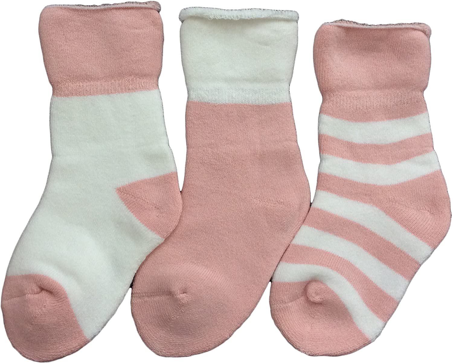 Lian LifeStyle Children's 3 Pairs Premium Cotton Crew Socks Stripes Size(0Y-2Y)