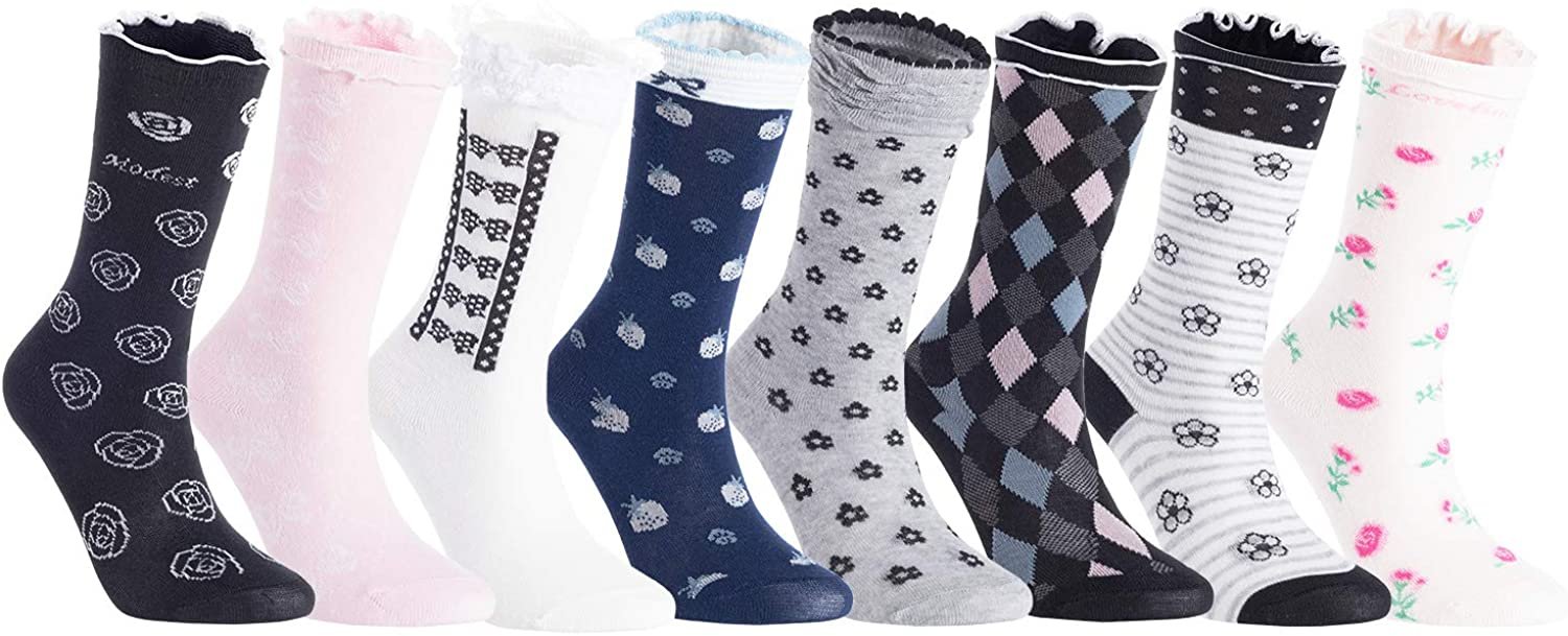 Lian LifeStyle Cute&Warm Girls 8 Pairs Knee High Cotton Socks CM01 Size 2Y-10Y