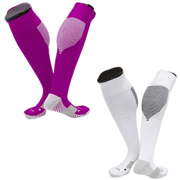 Lian LifeStyle Exceptional 2 Pairs Knee High Sports Socks for Soccer, Softball, Baseball, Soccer, and Many Other Sports XL0034 Size 6-9 (PURWHI,WHIBLK)