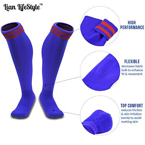 Lian LifeStyle Exceptional Adult's 2 Pairs Knee High Sports Socks for Soccer, Softball, Baseball, Many Other Sports XL002 Size XXS Blue