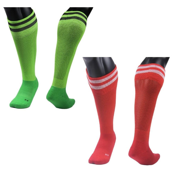 Lian LifeStyle Exceptional Boy's 2 Pairs Knee High Sports Socks for Soccer, Softball, Baseball, Soccer, and Many Other Sports XL002 Size M (GREEN,RED)