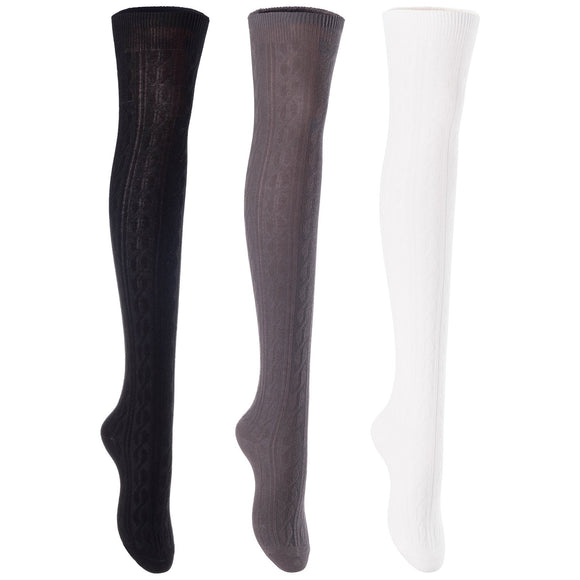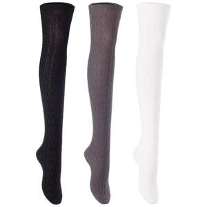 Lian Lifestyle Exquisite Big Girls Women’s 3 Pairs Thigh High Cotton Socks. Super Comfortable in Vibrant Colors Size 2.5-7 LBG1024 (Black,DarkGrey,Cream White)