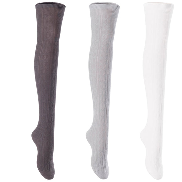 Lian Lifestyle Exquisite Big Girls Women’s 3 Pairs Thigh High Cotton Socks. Super Comfortable in Vibrant Colors Size 2.5-7 LBG1024(Dark Grey,Grey,Cream)