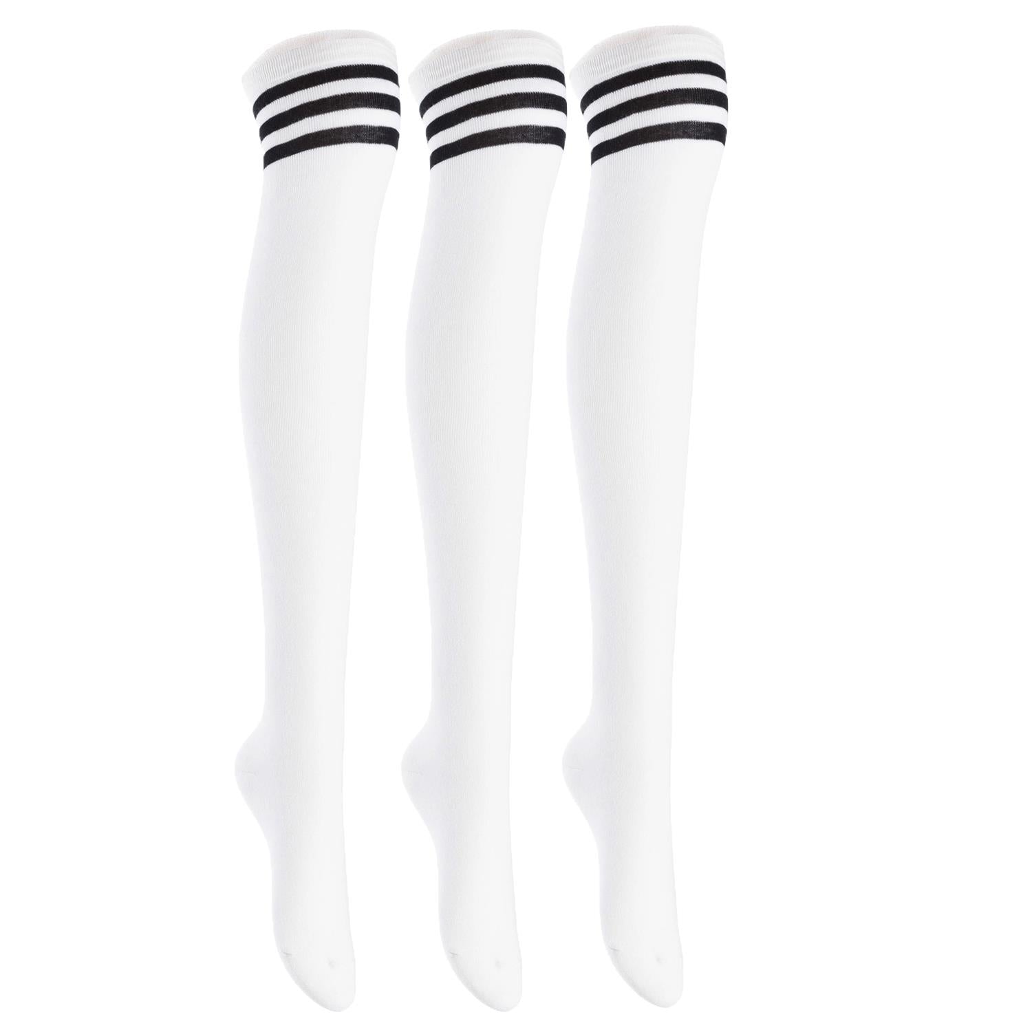Lian LifeStyle Exquisite Big Girl's Women's 3 Pairs Super Comfortable Thigh High Cotton Socks in Vibrant Unique Colors Size 6-9 L1022(White)