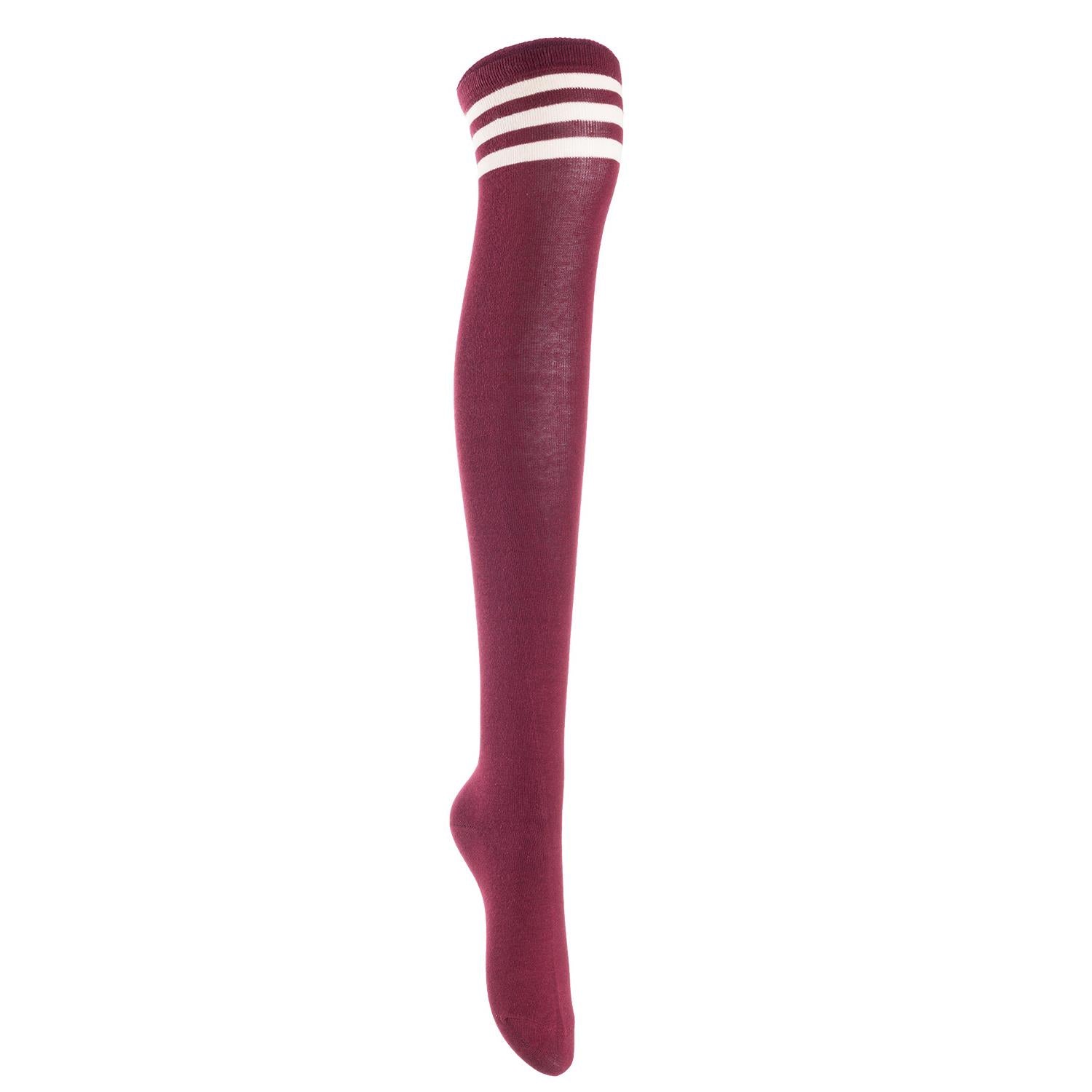 Lian LifeStyle Exquisite Big Girl's Women's 3 Pairs Super Comfortable Thigh High Cotton Socks in Vibrant Unique Colors Size 6-9 L1022(Wine)