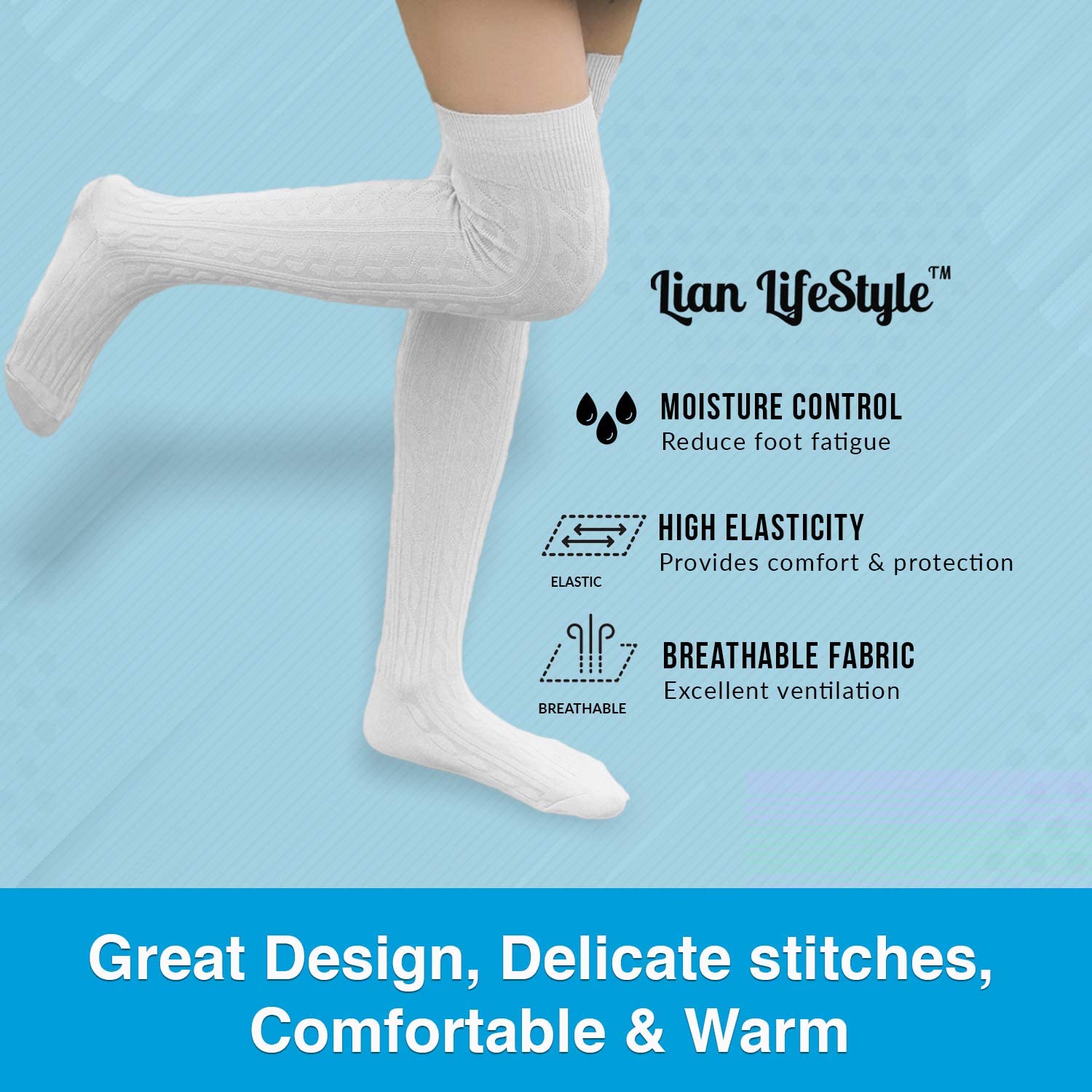 Comfortable, light and trendy socks with a unique design shaped to please any teenage girl or lady. Experience the velvet feel and the warmth of a perfectly crafted overknee sock that will flawlessly cover your toes, ankle and calf. These socks will harmonize with whatever you are wearing, even if it’s a vintage, sport or sexy look. Constructed with a rich cotton layer so your feet feel spoiled at every step. The quality, style and accurate size transform these socks into the ideal accessory for your wardrobe collection.