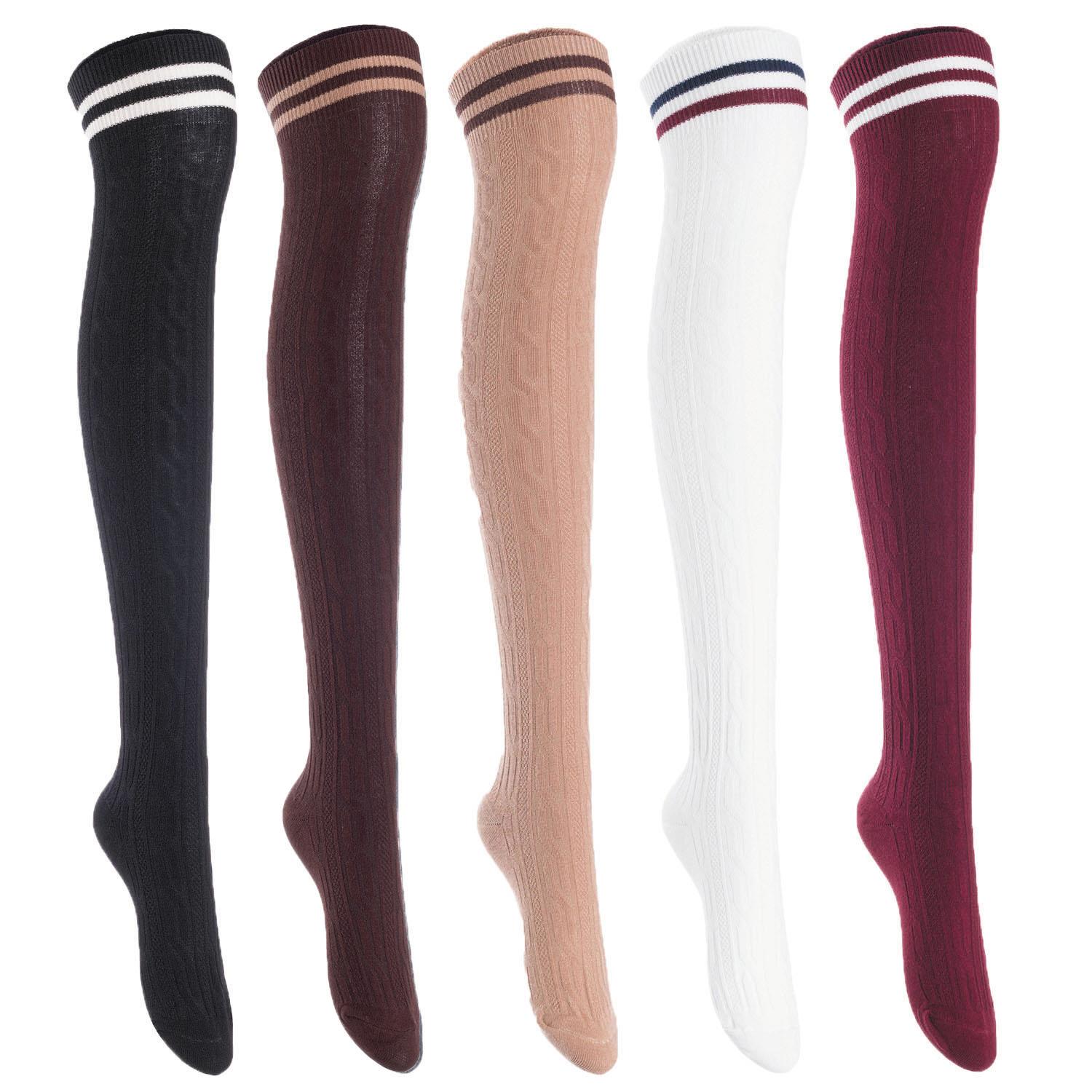 Lian LifeStyle Exquisite Big Girl's Women's 5 Pairs Thigh High Cotton Socks. Super Comfortable Female Socks in Vibrant Colors Size 6-9 L1023(Blk,Cof,Kaki,Wite,Wine)