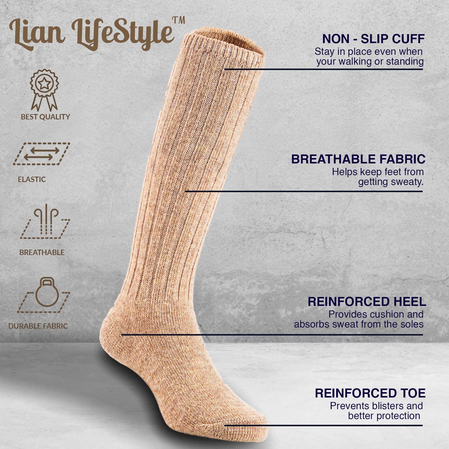 Lian LifeStyle Fascinating Children's 1 Pair Knee High Wool Blend Boot Socks Resistant, Comfortable and Health Focused FS02 Size M (2-4Y) (Beige)