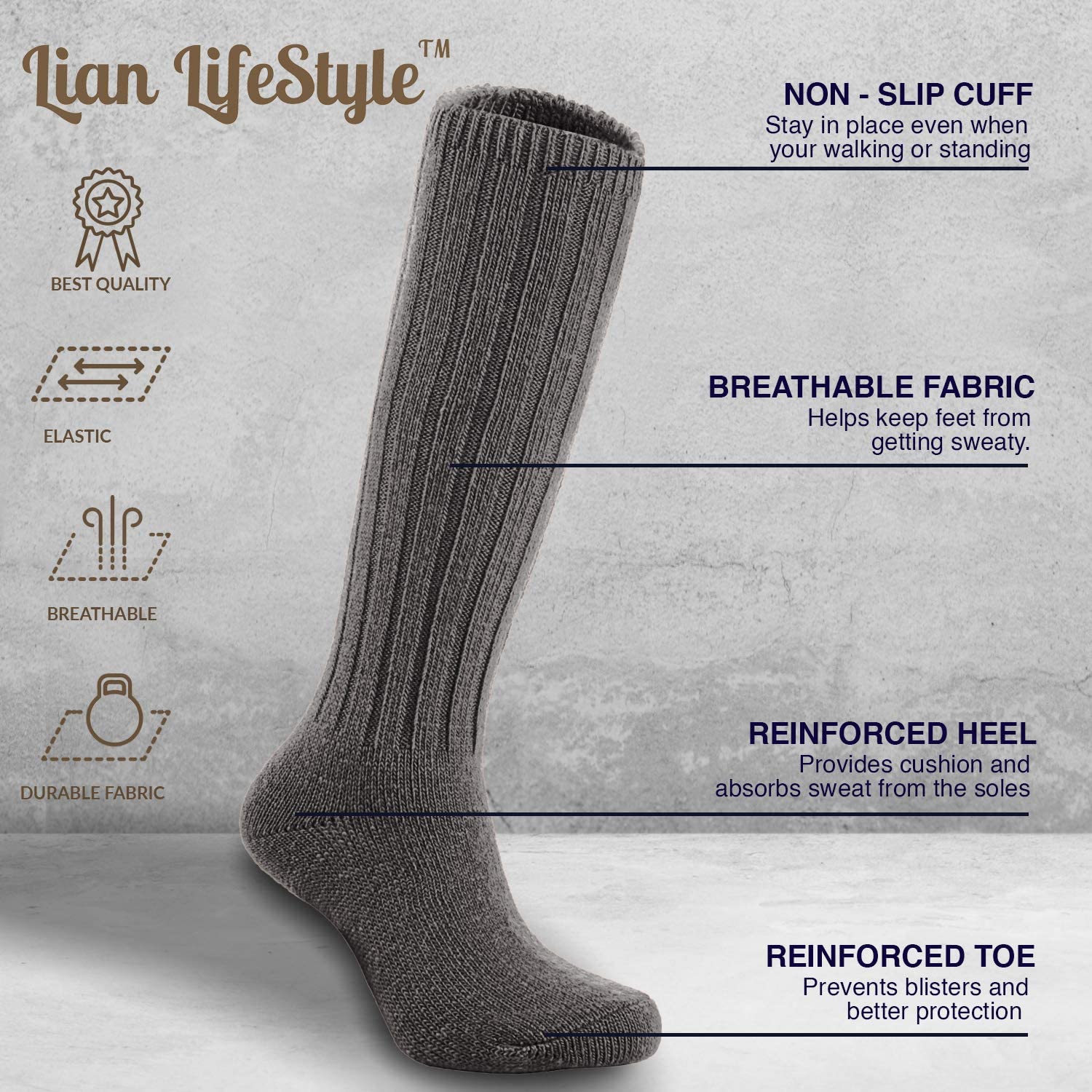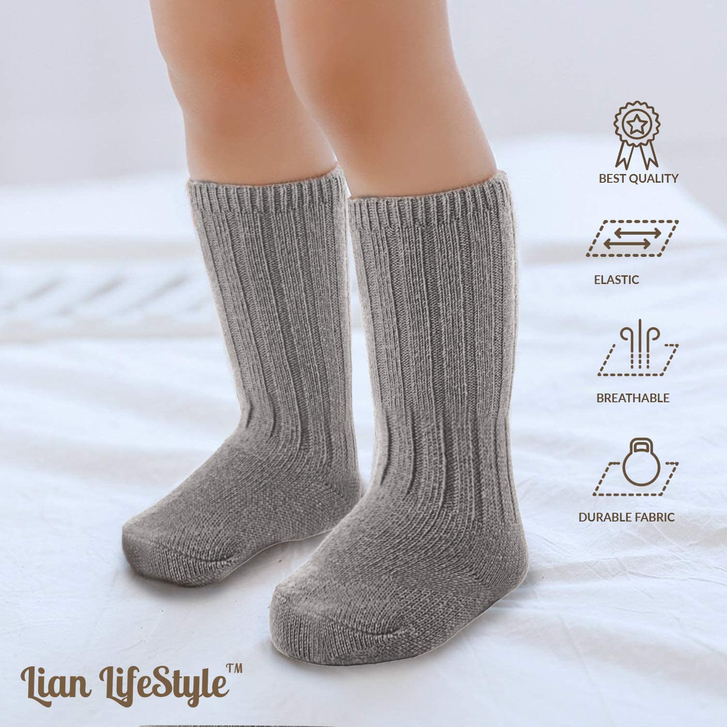 Lian LifeStyle Fascinating Children's 1 Pair Knee High Wool Blend Boot Socks Resistant, Comfortable and Health Focused, FS02 Size S (0-2Y) (Dark Gray)