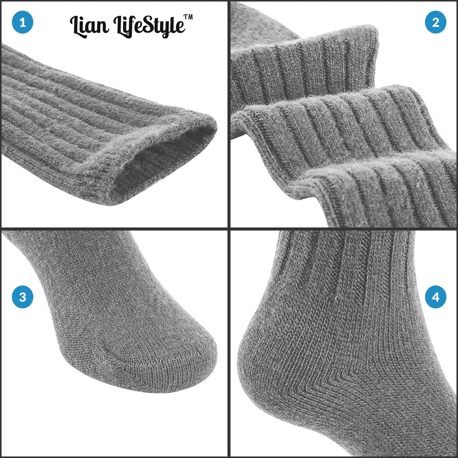 Lian LifeStyle Fascinating Children's 1 Pair Knee High Wool Blend Boot Socks Resistant, Comfortable and Health Focused, FS02 Size S (0-2Y) (Gray)