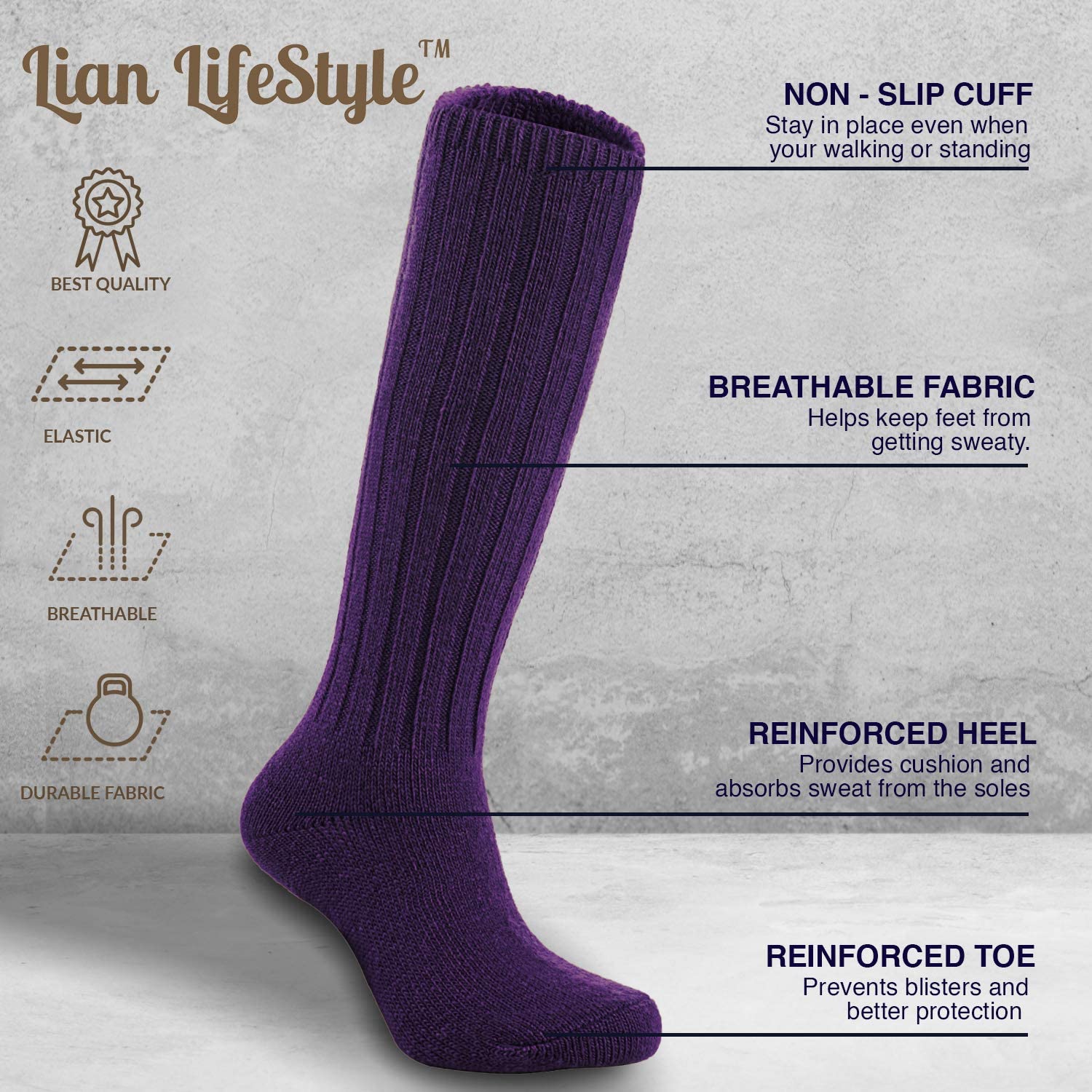Lian LifeStyle Fascinating Children's 1 Pair Knee High Wool Blend Boot Socks Resistant, Comfortable and Health Focused, FS02 Size S (0-2Y) (Purple)